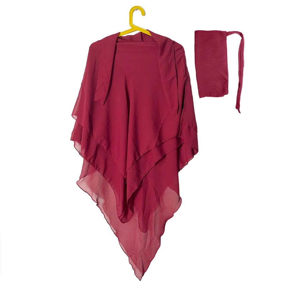 Three Layer Khimar with Niqab Ready to Wear – Red