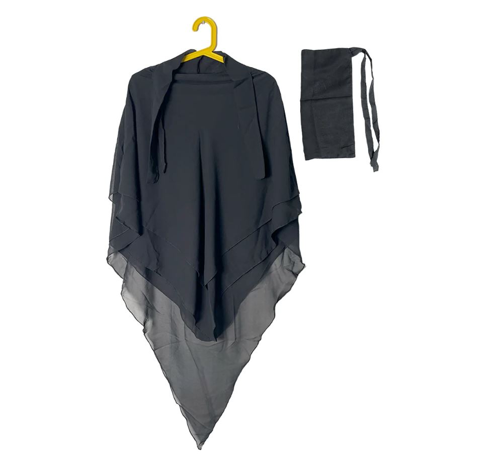 Three Layer Khimar with Niqab Ready to Wear – Black