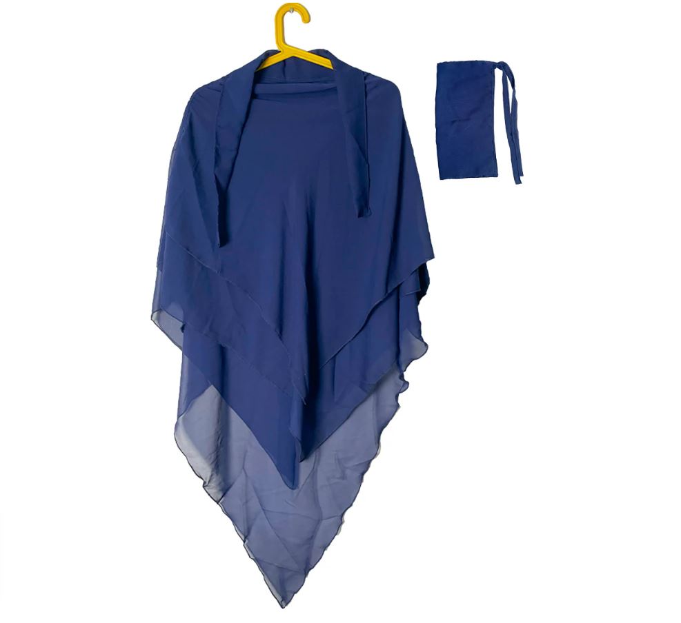 Three Layer Khimar with Niqab Ready to Wear – Blue