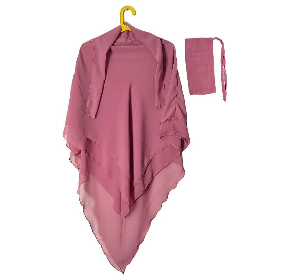 Three Layer Khimar with Niqab Ready to Wear – Pink